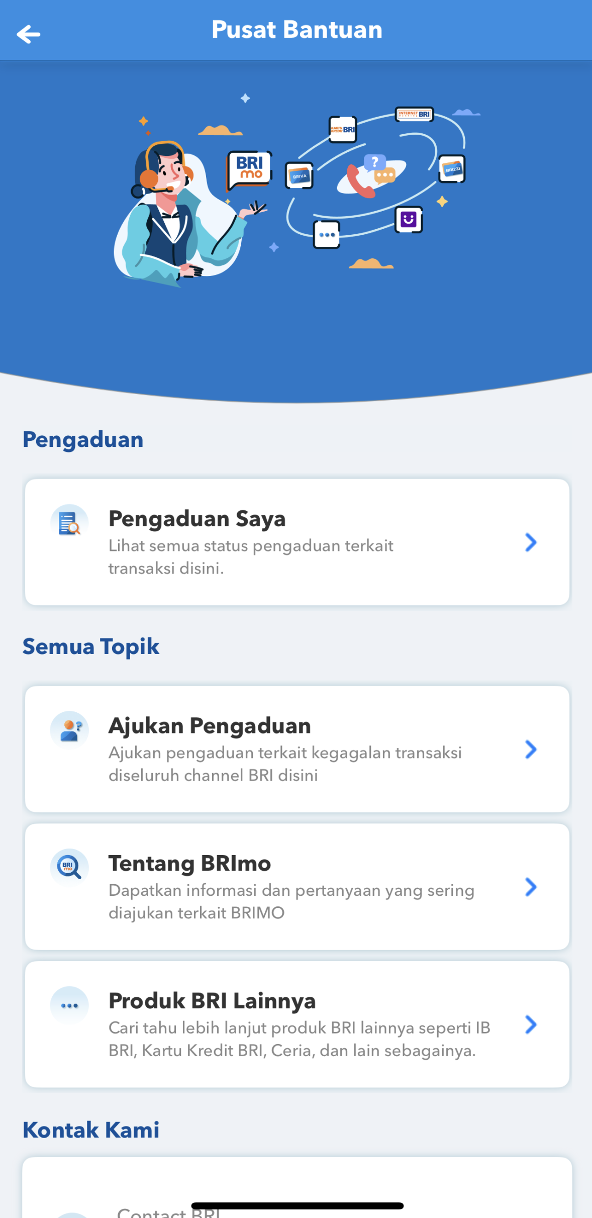 4. Di Halaman “Pusat Bantuan”, Scroll ke Bawah sampai Menemukan “Contact BRI”